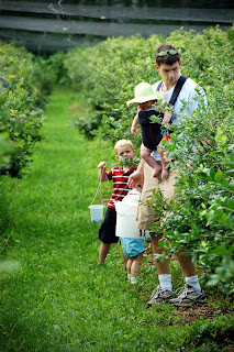 Saturday we had a family blueberry picking outing.. Rob and I picked the most of course, but Caden and Cole did okay, and Cole surprised me and actually put quite a few in his pail! They both probably had more in their belly.. but hey! That's the fun of it when you are a kid right?! In the end we picked just over 10 pounds of blueberries! We made some jam, froze a bunch and ate a ton!