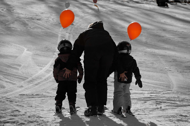 A semi-artistic shot of Cole's group getting a "lift" up the slope.. I just love the balloons!.. perhaps because they are my favorite color :)